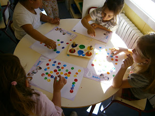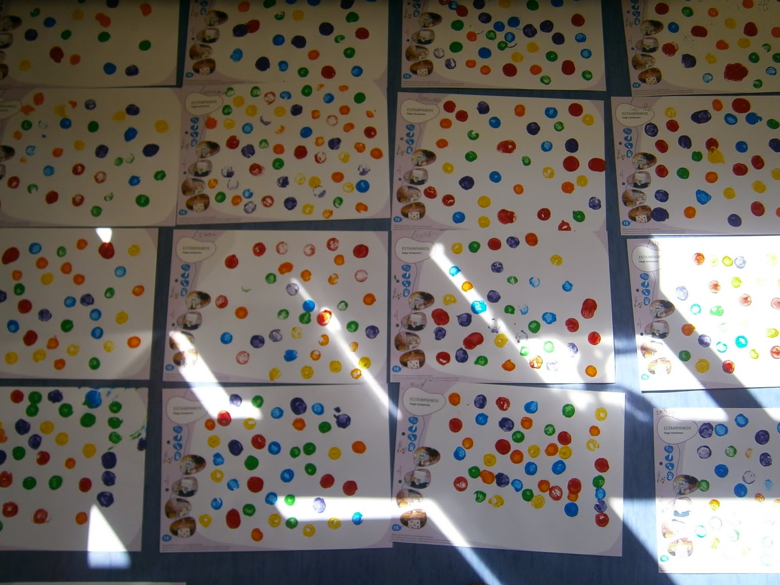 Que desilusión, con lo bonito que nos habían quedado. pero afortunadamente la seño reaccionó rápidamente y saco de su caja de "TESOROS DE PLÄSTICA" tapones de corcho y pintura y cambiamos nuestra técnica. Al final con tantoo color, igualmente nos lo pasamos bien. ¡¡COSAS QUE PASAN!!