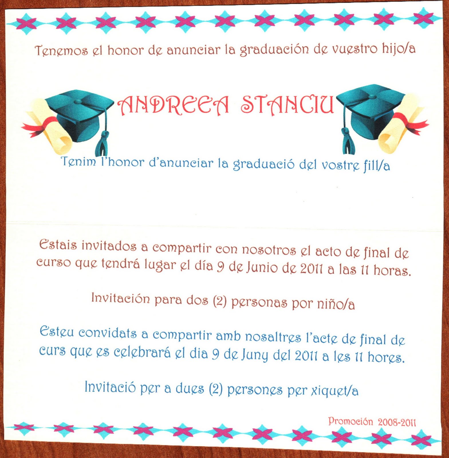 Nuestra graduación será el día 9 de Junio a las 11'00 de la mañana. Hasta próximas noticias.