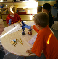Después de hacer los dibujos... un poquito de barniz y purpurina plateada le dan untoque final de ¡AUTÉNTICOS ARTISTAS! Aquí lo tenéis.
