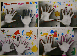 De pronto la seño nos dijo que nos fijáramos en la fotocopiadora. Vimos que podíamos hacer muchas copias de un papel que ponemos en la máquina y algo que no sea un papel, así nos propuso que fotocopiáramos nuestras manos y mirad ¡QUE CHULAS QUEDARON!