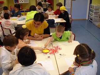 Para organizar el taller primero de todo reunimos a los padres para explicarles la idea y hacer una lista de los que pueden participar. Normalmente se realiza una tarde a la semana de 3'00 a 4'30 horas. El orden de participación de los padres, desde el principio les explico, que lo decido yo, puesto que influye mucho el proceso de adaptación que van realizando los alumn@s: hay algunos niñ@s que no están todavía preparados para realizar actividades con sus papás en el aula.
