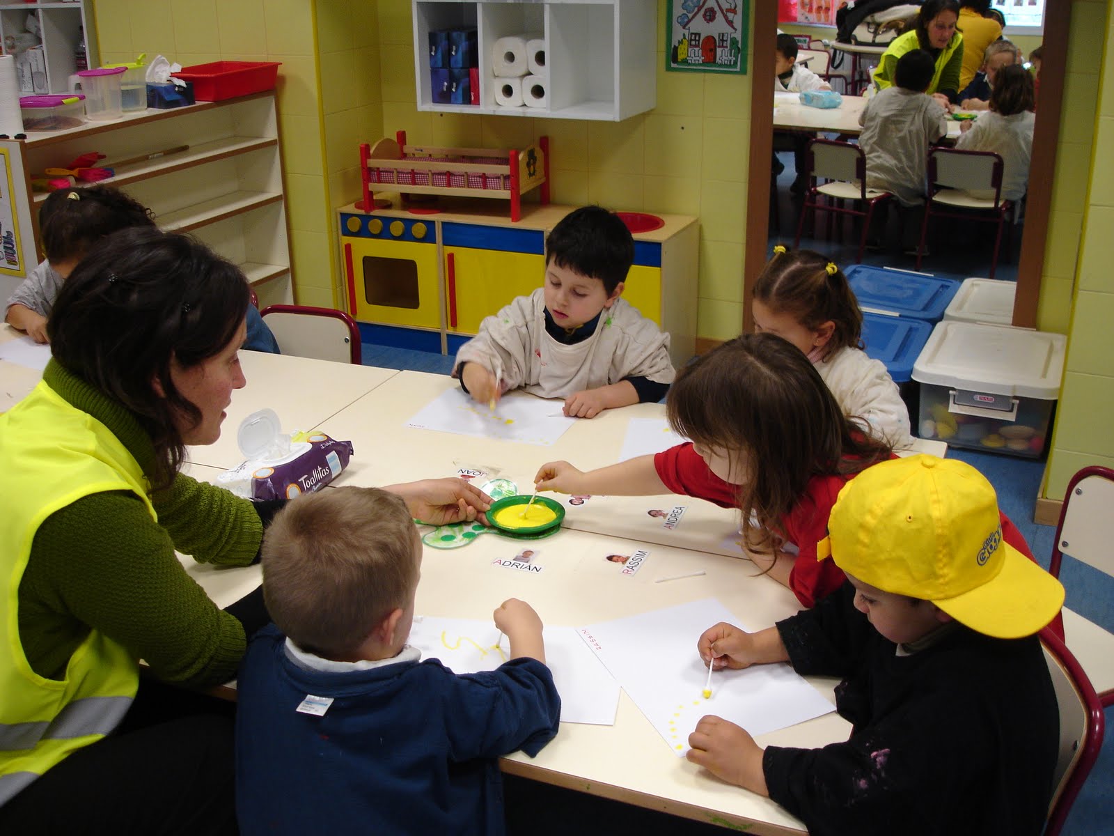 Todos los cursos intentó realizar algún taller de padres aunque no en todos los coles se puede hacer, pero es una experiencia muy enriquecedora. En el nivel de 3 años me gusta hacer el taller de colores. Es una forma muy buena de trabajar los colores realizando técnicas plásticas variadas con la ayuda de las familias.