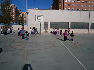 En tercer lugar asistimos al taller "Musicomotricidad". Ponente: Aitor Zenarrutzabeitia. Lo único que os puedo decir es que consiguió hacer que aproximadamente 60 maestros y maestras de educación infantil realizaran una clase práctica y dinámica absolutamente coordinada entre todos, sin abrir la boca durante muuuucho rato, jeje... impresionante y sobre todo superdivertido. (Blanca me acordé mucho de ti, jijiji)