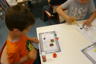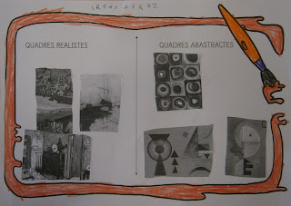 Cuando abrimos el rollito y les enseñamos los cuadros a los enanos, les dijimos que tenían que elegir uno y los 76 escogieron el mismo cuadro... parece un poco extraño ¿verdad?. El problema que nos encontramos fue que los compañeros de 6º de primaria, nos dieron tres fotos, pero dos en blanco y negro y una en color... y claro cuando les preguntamos ¿cuál les gustaba más? TODOS señalaron la que era de color. Además tenemos que reconocer que los cuadros que habían escogido eran de una gran complejidad para nuestros enanos.