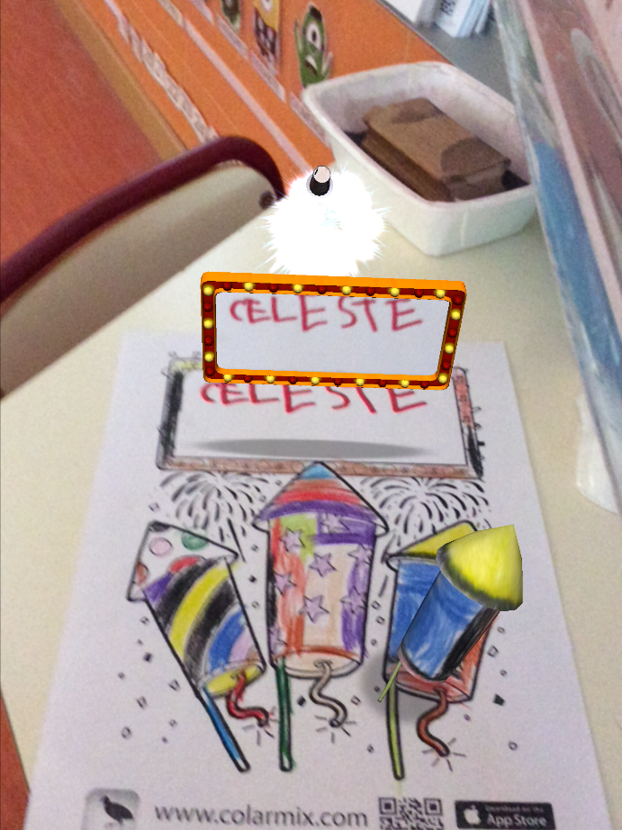 Una vez secas nuestras manos, las hemos recortado siguiendo el contorno de la huella de la mano. A continuación hemos pegado un estrella en la punta de cada dedo corazón y hemos pintado unas bolitas en cada uno de los demás dedos estampando huellas de colores.