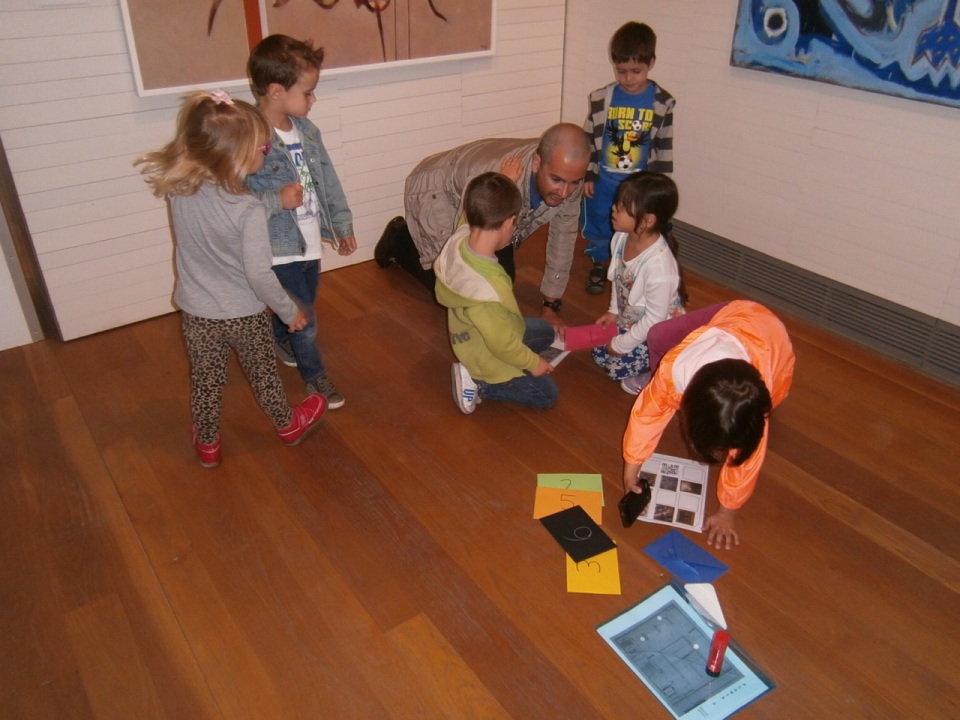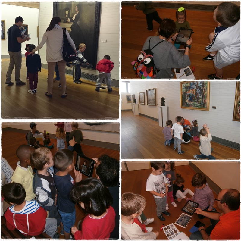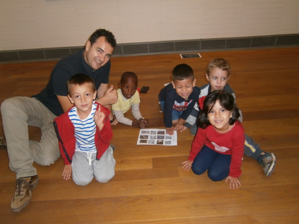 A medida que iban recorriendo el museo y encontraban los diferentes cuadros salían corriendo y dando gritos jijii. Estaban emocionados puesto que en clase sólo los habíamos visto en blanco y negro y de tamaño folio. No sabían que tamaño tenían y lo que más les impresionó es que eran muy grandes. Una vez que llegaban a cada cuadro, escaneando un