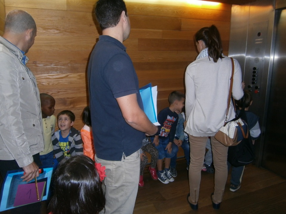 Como ya sabíamos que teníamos que ir a la planta 2 y 3, hemos cogido el ascensor que es de madera y muy, muy grande. ¡¡Nos ha encantado!!.