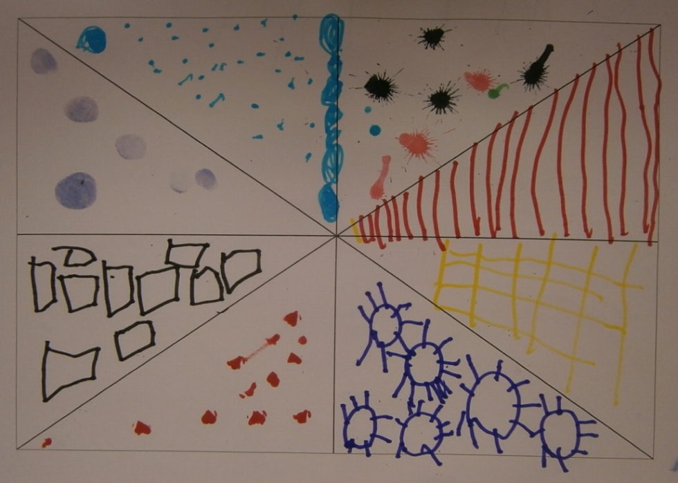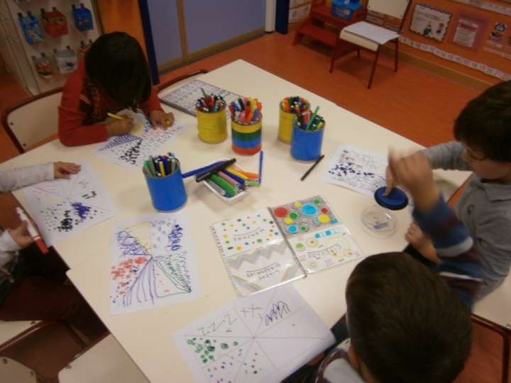 En esta ocasión la actividad que realizamos en nuestro TALLER DE GRAFISMO era libre y utilizando estos dos libros de nuestra biblioteca de arte. Para ello les entregué una hoja con espacios diferenciados y tenían que decorarlos cada uno de una manera diferente. Por equipos fueron pasando por este rincón y utilizando ambos libros fueron buscando posibilidades distintas. Por supuesto también podían inventarse otras nuevas.