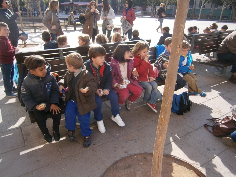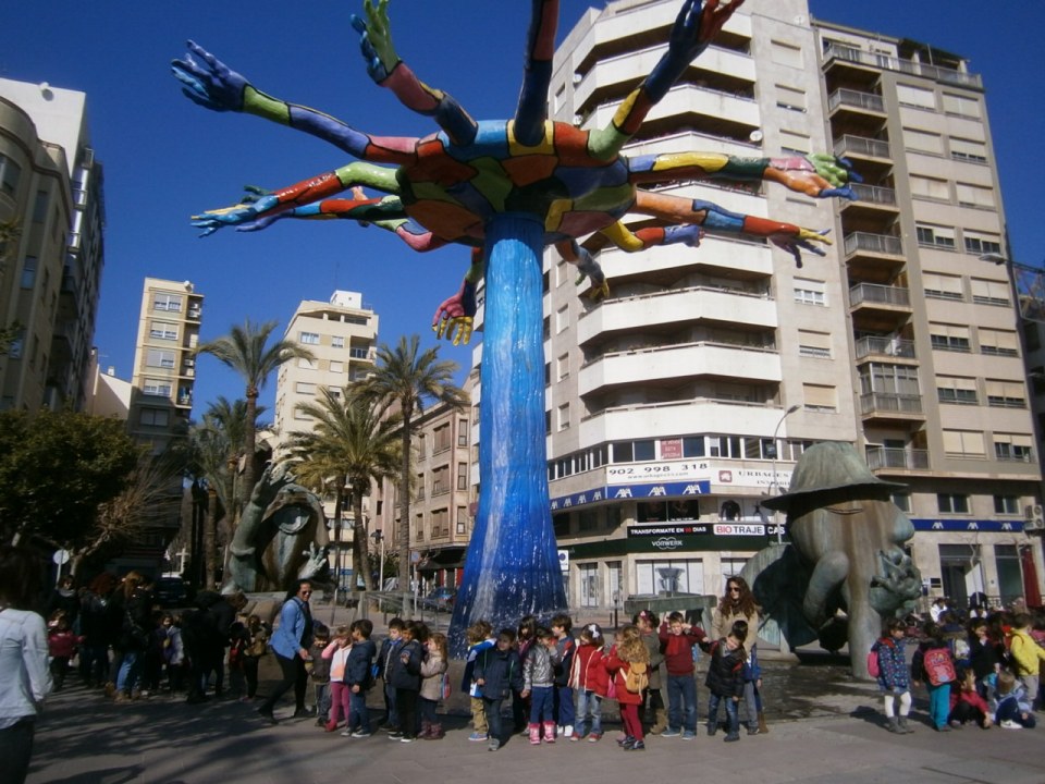 Rodeando la fuente pudimos acercarnos al FADRÍ y nos dimos cuenta de que cerquita, cerquita se veía mucho más alto que en las fotos del cole. Desde el Fadrí también observamos que en el Mercado ya han colocado las luces para las fiestas de La Magdalena que empiezan en un par de semanas.