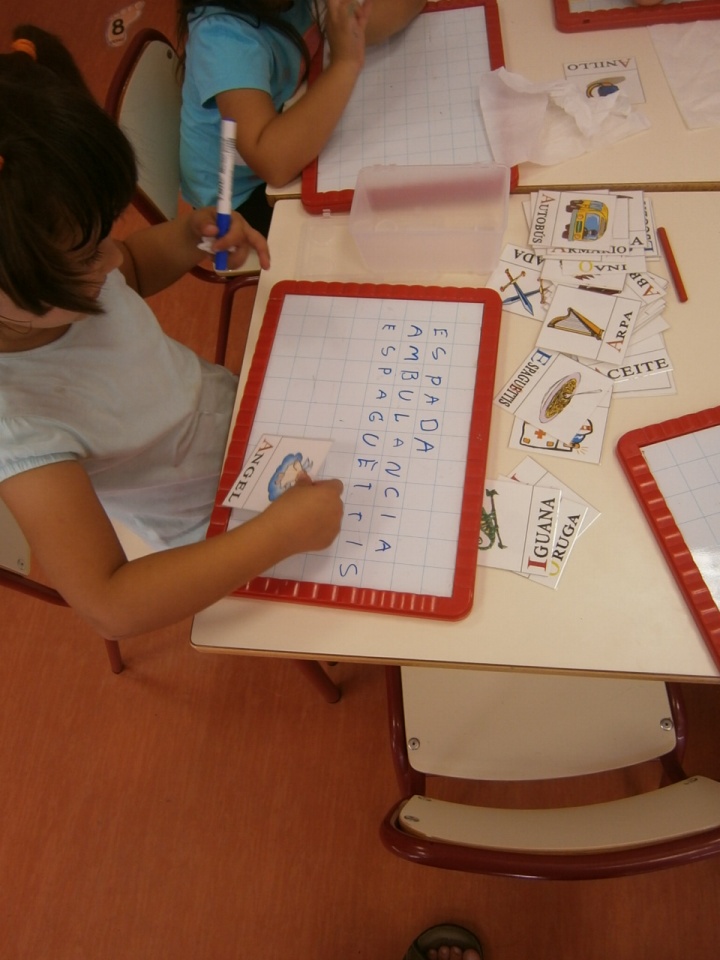 A continuación entre todos fuimos leyendo las palabras y colocándolas en su sitio hasta completar todos los huecos.
