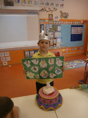 Segunda semana de cole y ya celebramos el primer cumpleaños del curso. PEDRO ha cumplido 5 años y estaban impacientes por saber qué sorpresa iban a tener este año. El año pasado entre todos le preparábamos al cumpleañero un libro con dibujos de regalo y este curso preparamos EL MANTEL DE CUMPLEAÑOS. Es una idea que encontré hace ya unos cuantos años en el blog "Peque Basilio" y que ya hice con anteriores promociones.