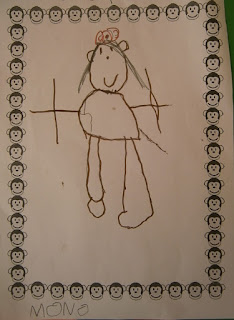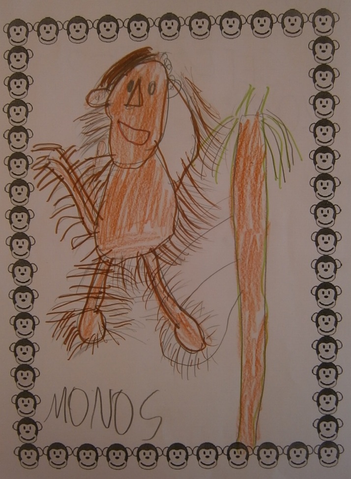 Posteriormente me pidieron si podían dibujar monos así que entre todos escogimos un marco de monos y preparamos una hoja para hacer nuestro dibujo libre. Aquí os dejamos algunos ejemplos...