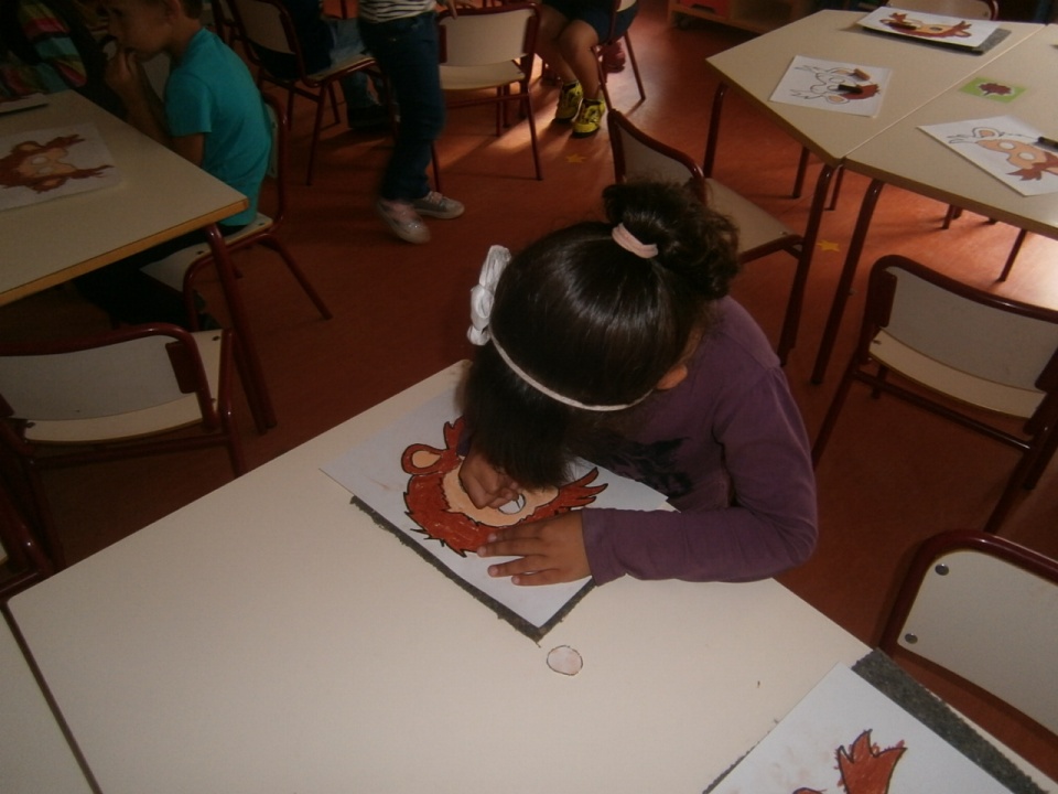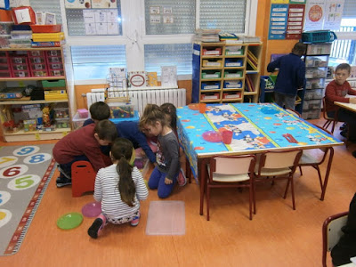Dividimos la clase en cuatro grupos capitaneados por uno de los papis participantes. Dos de los equipos fueron jugando con Zumbidos y con Pinchito, utilizando los diferentes paneles que ya hemos presentado (pincha aquí). Y los otro dos grupos fueron realizando dos actividades diferentes. Así, rotando, los cuatro equipos pasaron por todas las actividades.