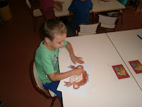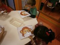 La siguiente actividad consistía en buscar los animales escondidos utilizando unos paneles de animales y tarjetas de indicaciones. Os dejo el enlace al blog en el que la encontré "La classe de Laurene" porque me parece una actividad y un blog genial. A mis enanos les encanta.