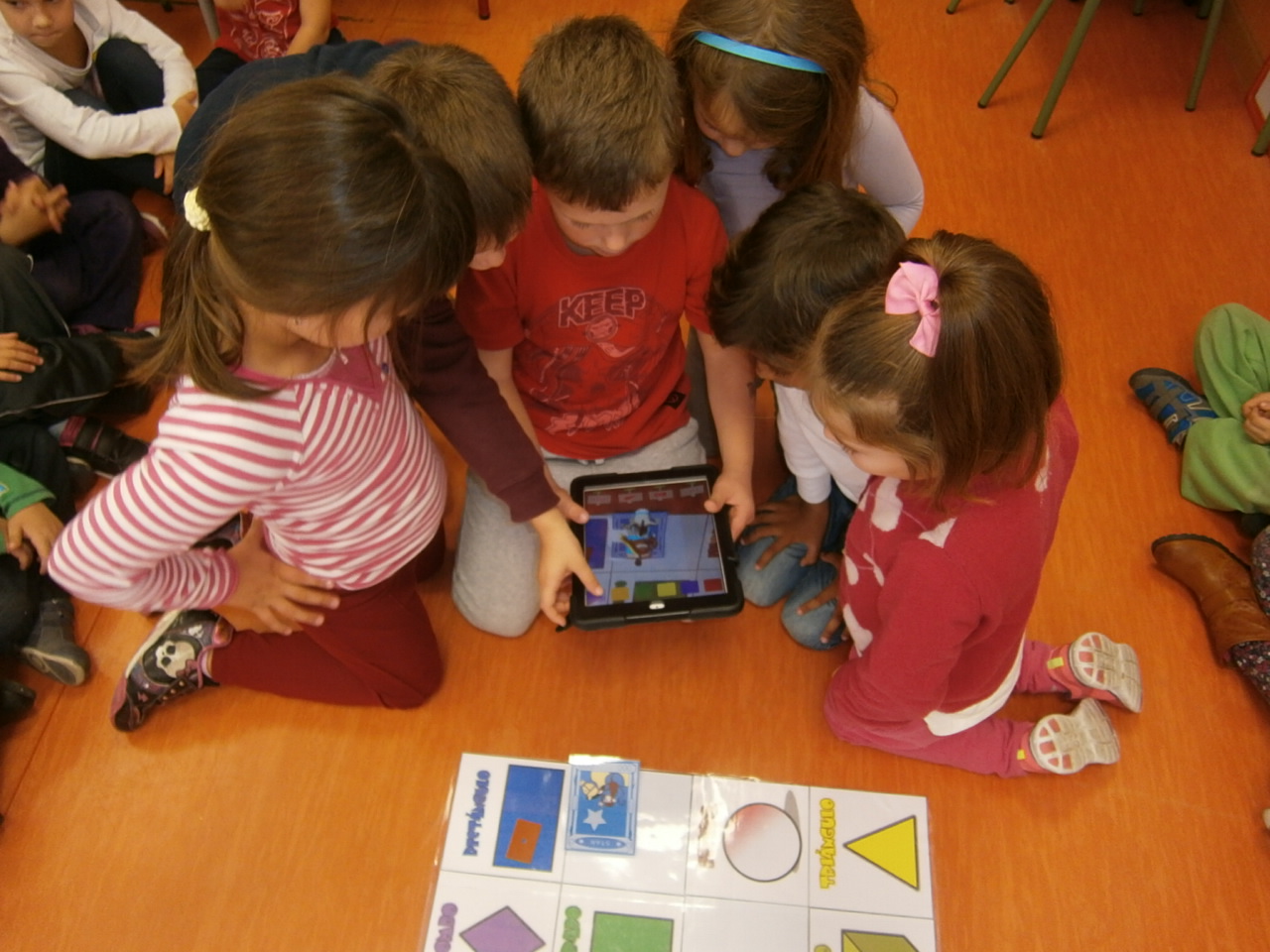 Uno de los grupos jugaba con la App de Bee Bot con el ipad de la clase y el de mi marido que se lo quitamos esos días y al que le damos las gracias jejeje. Esta es la app por si queréis descargárosla en casa.