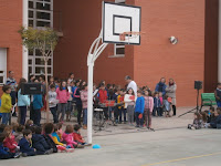 Para empezar los alumnos de 5º de primaria leyeron un comunicado y un poema sobre la PAZ. Continuamos cantando la canción de la PAZ que nos había enseñado la seño de música Amparo.