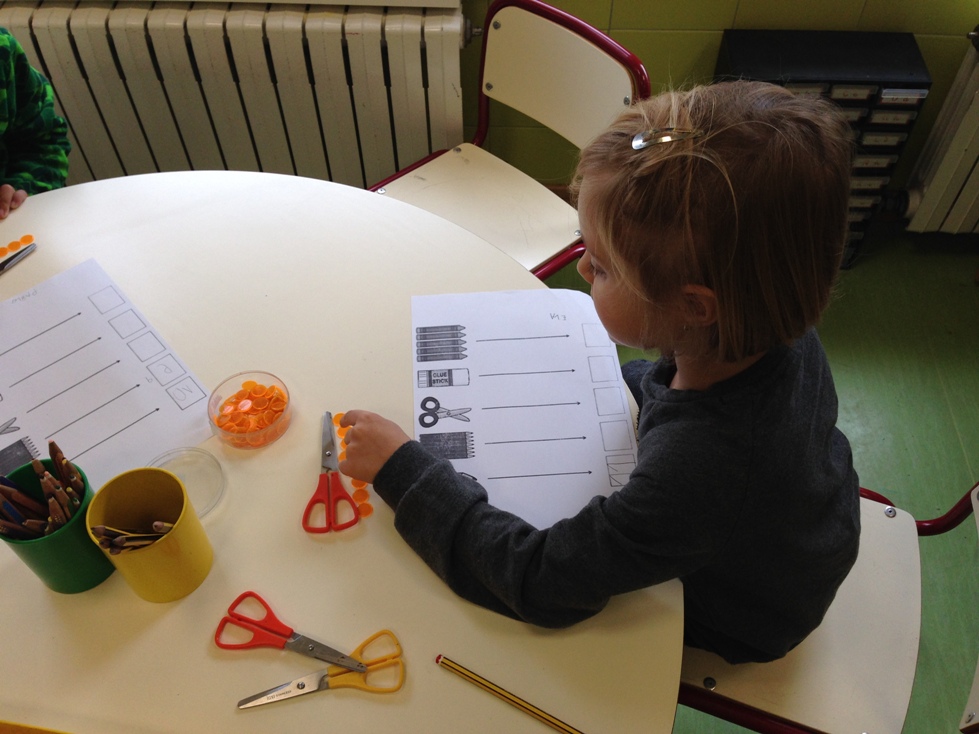 Cada uno podía usar los utensilios que quisiera y presentar sus cuatro tazas ordenadas de forma libre. Fueron siguiendo diferentes estrategias y en ocasiones ayudándose unos a otros. Resultó una actividad muy entretenida y divertida para ellos.