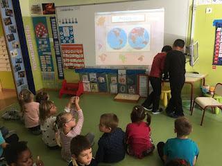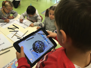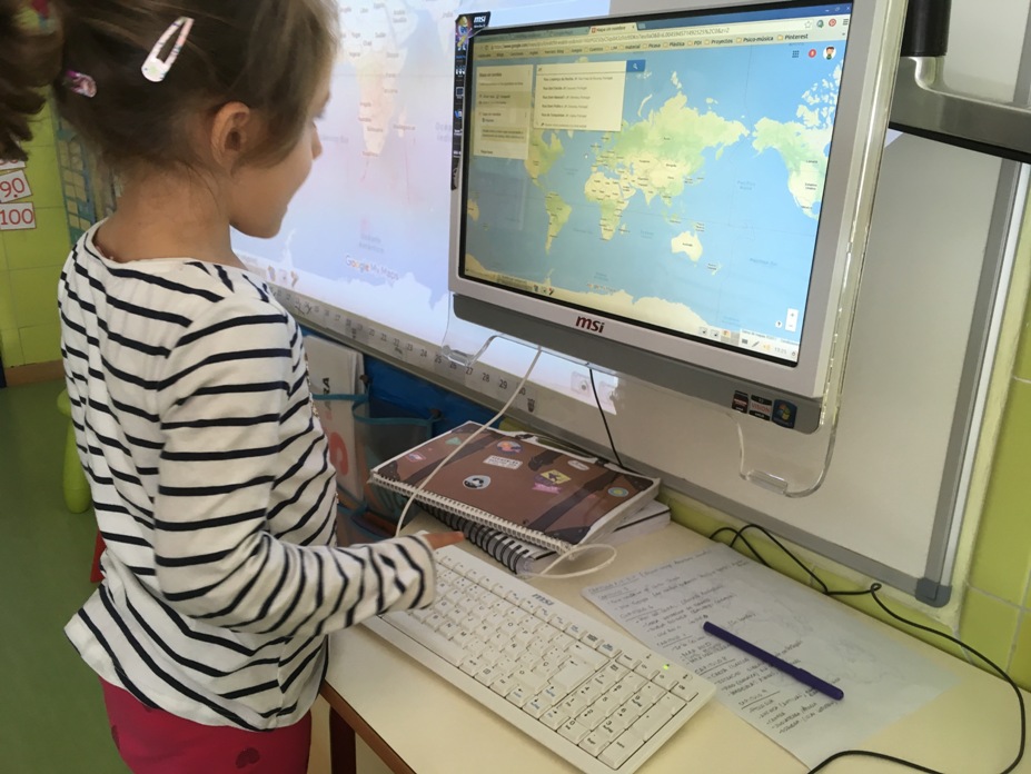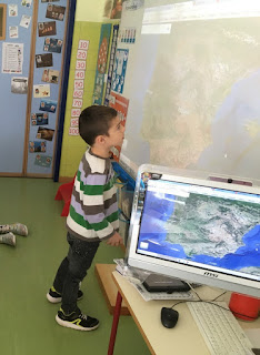 La segunda misión iba acompañada de una imagen de nuestro planeta y consistía en localizar nuestro cole usando GOOGLE EARTH. Fuimos acercándonos y buscando nuestro continente, nuestro país, nuestra comunidad, nuestra ciudad y finalmente nuestro cole. Fue un viaje emocionante que repetimos varios días y que también nos llevó a otros lugares pues quisieron "viajar" a Rumanía, Argelia, Marruecos... algunos de los países de origen de nuestras familias.